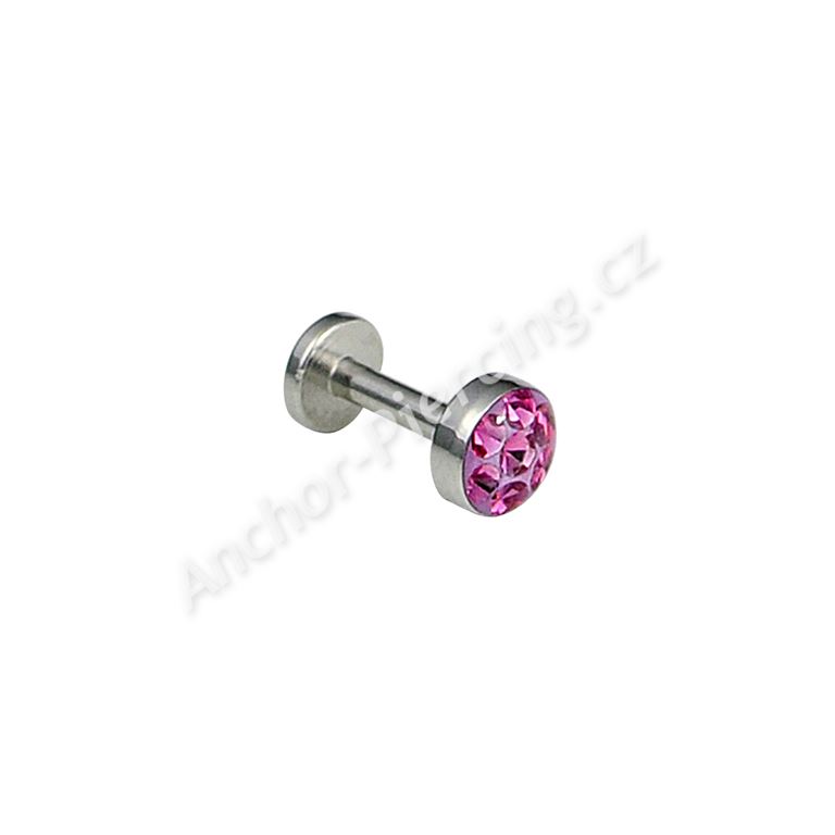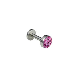 Labreta z chirurgické ocele 316L s růžovými kamínky.