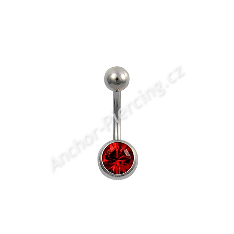 Titanový banánek s červeným kamínkem pro piercing pupíku. U tohoto typu piercingu je šroubovací pouze horní kulička.