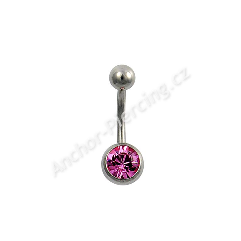 Titanový banánek do pupíku s růžovým kamínkem. Horní kulička je šroubovací.