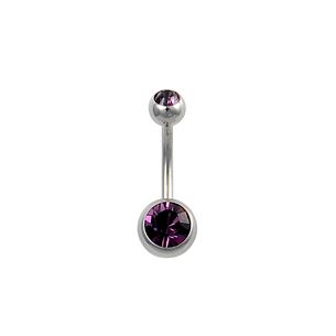 Banánek do pupíku z chirurgické ocele 316L se dvěma kamínky. Větší kulička je k tyčce uchycena na pevno, menší lze odšroubovat.
