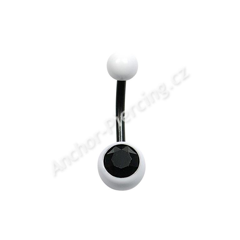 Banánek z chirurgické ocele 316L s bílými kuličkami, černou tyčkou a černým kamínkem. V naší nabídce naleznete i kroužky ve stejném barevném provedení, se kterými se dá tento banánek kombinovat.