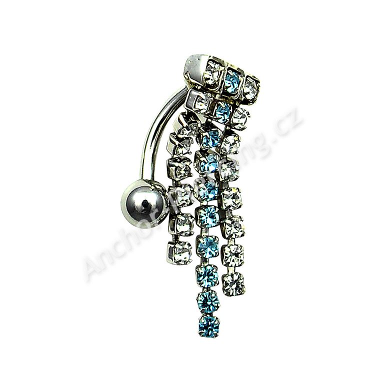 Piercing do pupíku s dvaceti šesti kamínky. Prostřední řada kamínků je světle modrá, venkovní řady potom čiré. Celková délka piercingu je 30mm, délka samotné tyčky potom 10mm.