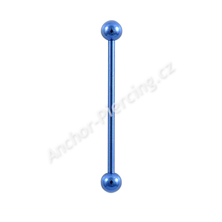 Titanová činka v modré povrchové úpravě. Povrchová úprava vzniká elektrolýzou a piercing tak dostane velmi zajímavý vzhled, navíc je povrchová úprava velmi odolná proti otěru.