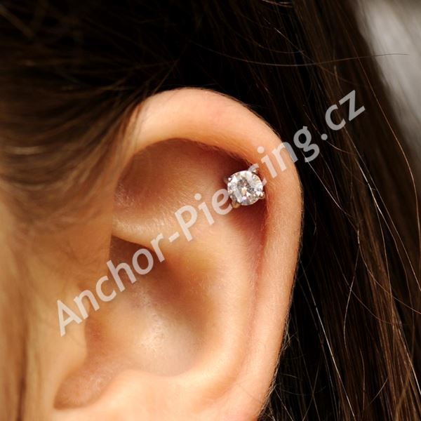 Činka z chirurgické ocele 316L se světle růžovým kamenem. Tuto činku lze použít na různé typy piercingů uší (tragus, conch, helix, lobe ap.).