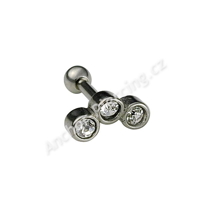 Činka pro piercing zvaný Tragus či Helix s třemi kamínky.