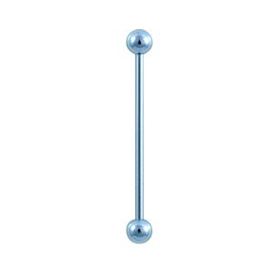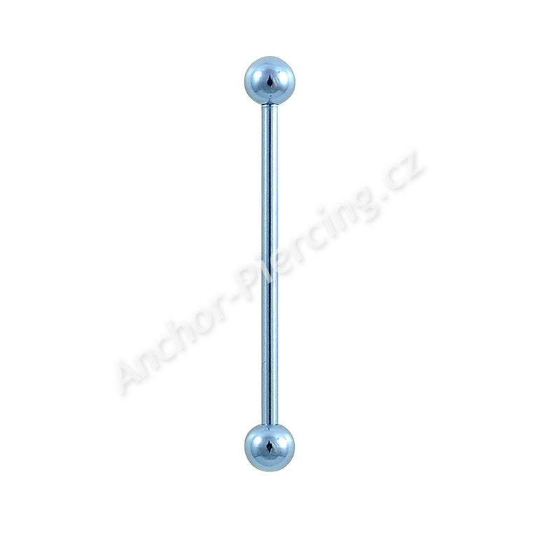 Titanová činka ve světle modré povrchové úpravě. Povrchová úprava vzniká elektrolýzou a je tak velmi odolná proti otěru.