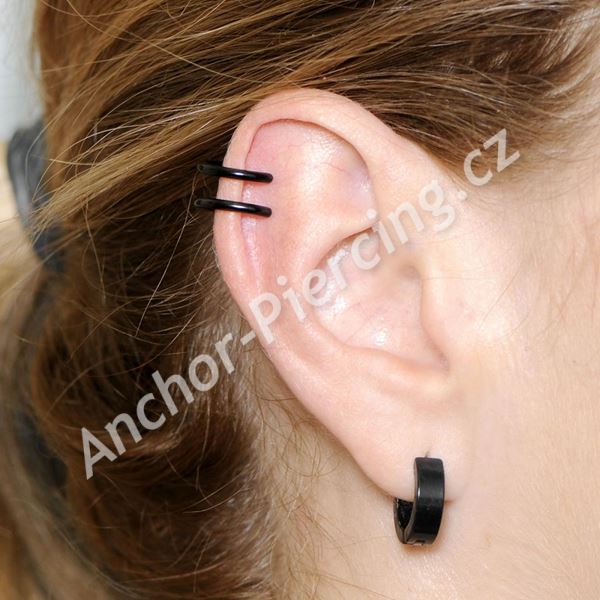 Tento falešný piercing po nasazení na hranu ucha, nebo rtu vypadá jako dva skutečné piercingové kroužky. K jeho nošení není zapotřebí žádných dírek. U některých uživatelů je třeba falešný piercing trochu přihnout či roztáhnout, aby dobře pasoval na ušní boltec.