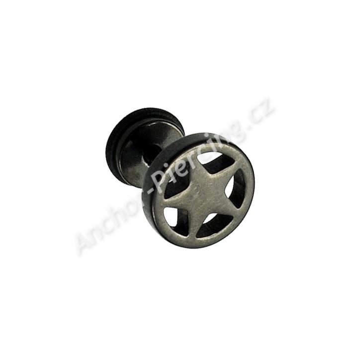 Falešný plug z chirurgické oceli v černé povrchové úpravě.