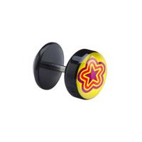 Falešný plug z akrylu na tyčce z chirurgické ocele 316L. Po obvodu disku je natažena snímatelná gumička.