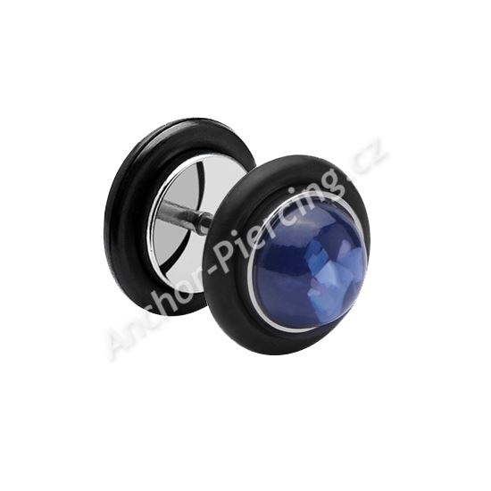 Falešný ocelový plug s modrým kamenem. Plug se dá nosit oboustraně, vnitřní strana je z hladké ocele.