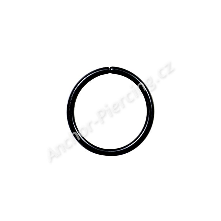 Kroužek z chirurgické ocele 316L v černé povrchové úpravě. Tento typ piercingového kroužku je při nasazování nutné lehce vykřivit do strany a po nasazení je potřeba jej narovnat zpět do původního tvaru. U tohoto typu uzavírání není většinou ani zapotřebí uzavíracích piercingových kleští. Tyto piercingové kroužky se dají použít pro různé typy piercingů uší (tragus, anti-tragus, conch, helix, rook, daith, snug, lobe), piercing nosu, obočí ap.