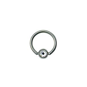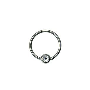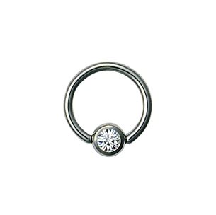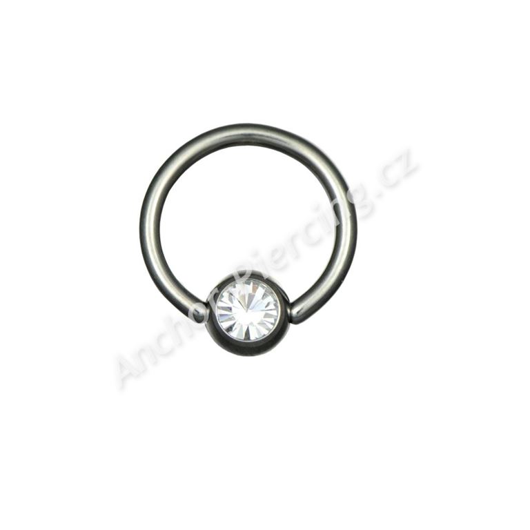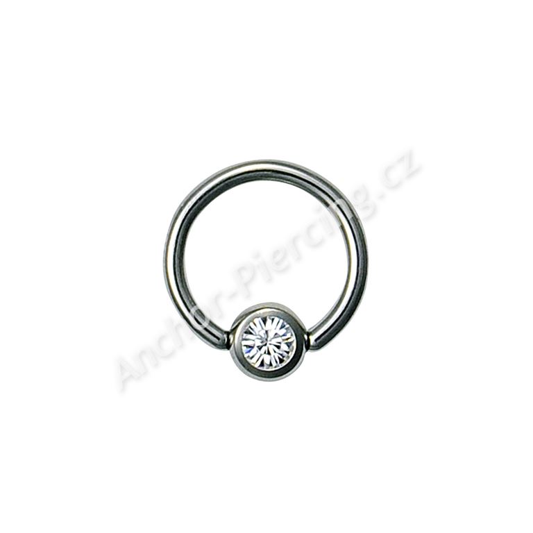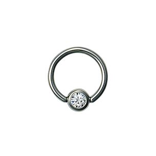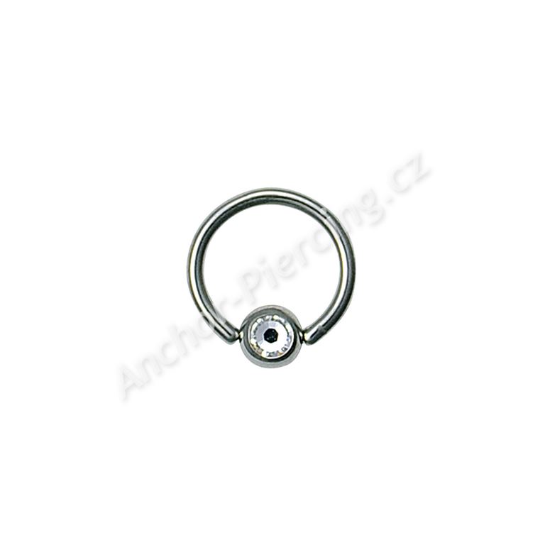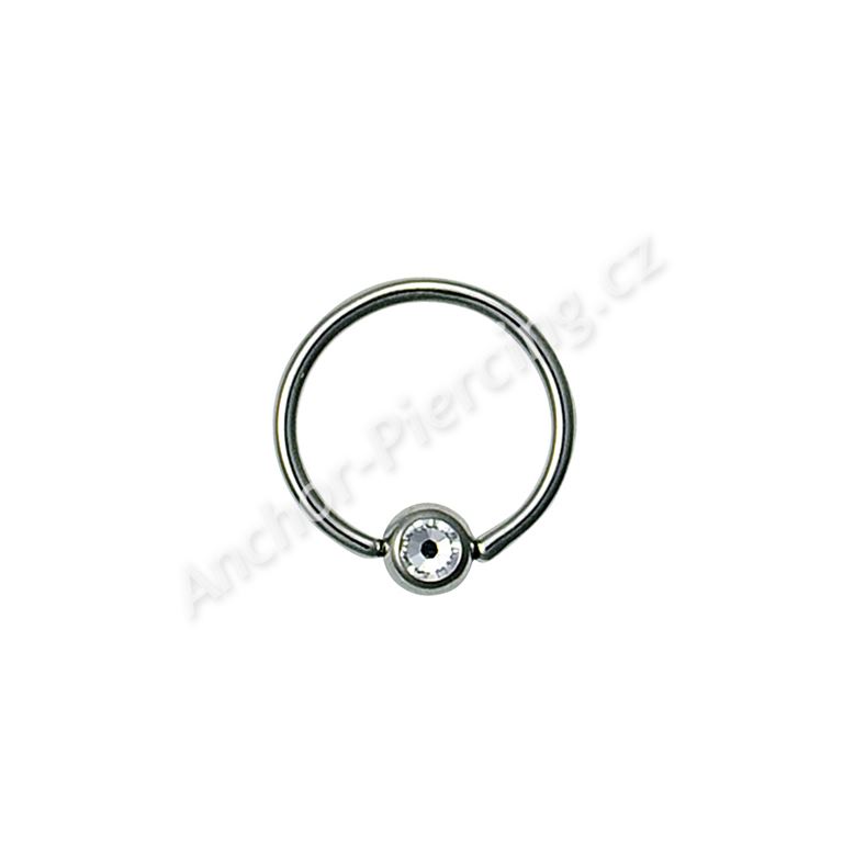Titanový kroužek s kuličkou (BCR) s bílým kamínkem. U tohoto typu je použita jako uzavírání kulička, která má po stranách dvě zahloubení a díky nim drží jako klip v kroužku. Tyto piercingové kroužky se dají použít pro různé typy piercingů uší (tragus, anti-tragus, conch, helix, rook, daith, snug, lobe), piercing nosu, obočí, rtů, bradavek, pupíku, některé typy intimních piercingů pro ženy (labia, horizontal hood, vertical hood, triangle, clitoris..).