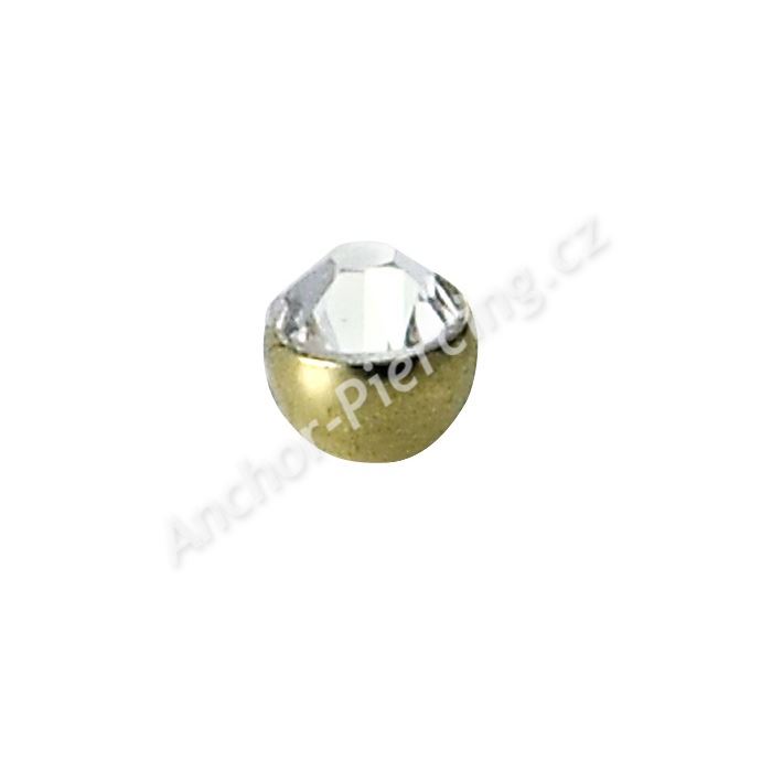 Šroubovací piercingová kulička s bílým kamínkem ve zlaté povrchové úpravě.