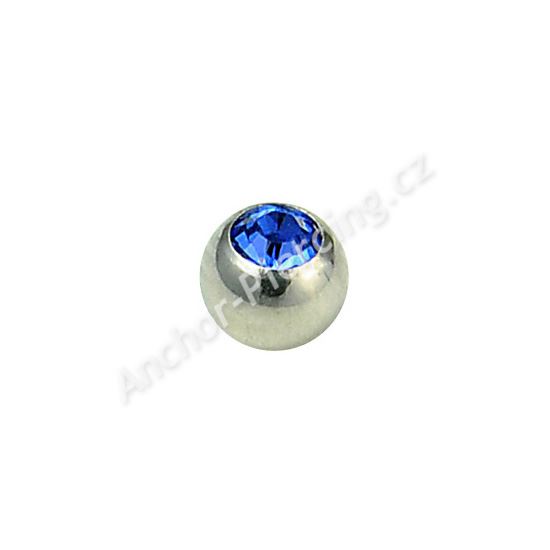 Šroubovací piercingová kulička s modrým kamínkem.