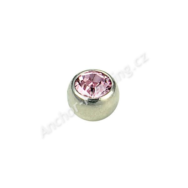 Kulička z chirurgické ocele 316L se světle růžovým kamínkem.