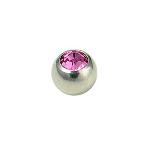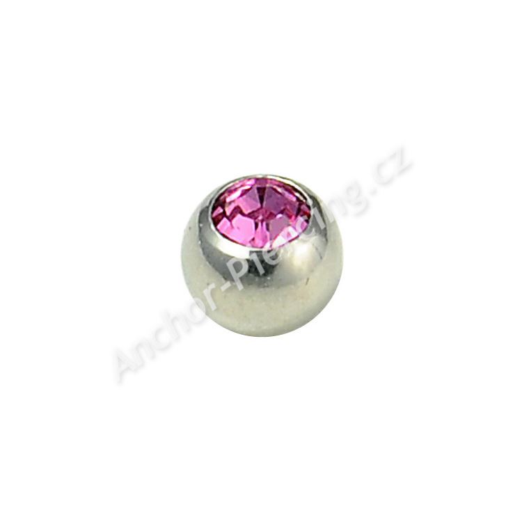 Piercingová kulička z chirurgické ocele 316L s růžovým kamínkem.