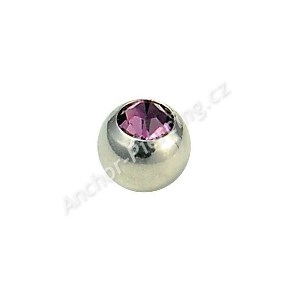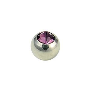 Šroubovací piercingová kulička z chirurgické ocele 316L osazena fialovým kamínkem.