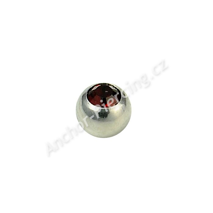 Šroubovací piercingová kulička z chirurgické ocele 316L osazena tmavě červeným kamínkem.