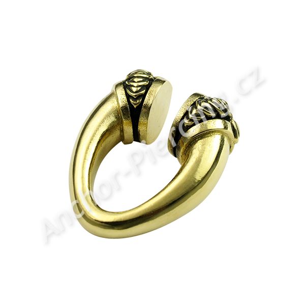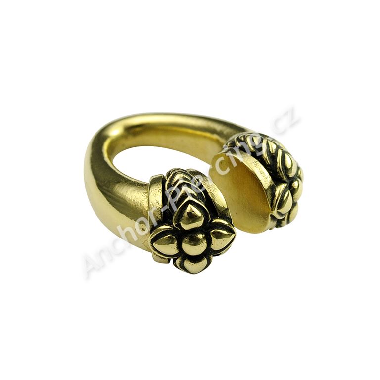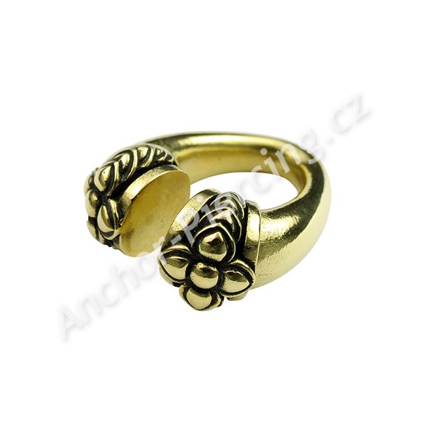 Mosazné závaží. Možno nosit společně s tunelem, nebo samostatně v roztaženém uchu. Průměr drátu 6mm, celkový průměr 30mm. Váha 17.5 gramů. Lze nosit pouze ve zhojeném piercingu.