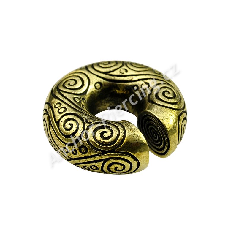 Mosazné závaží. Možno nosit společně s tunelem, nebo samostatně v roztaženém uchu jako náušnici. Lze nosit pouze ve zhojeném piercingu.
