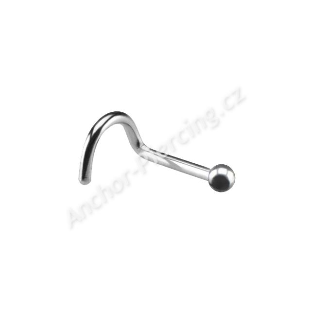 Nostrilka s kuličkou o průměru 2 mm na přední straně. Tento piercing je vhodný pro aplikaci do nosu.