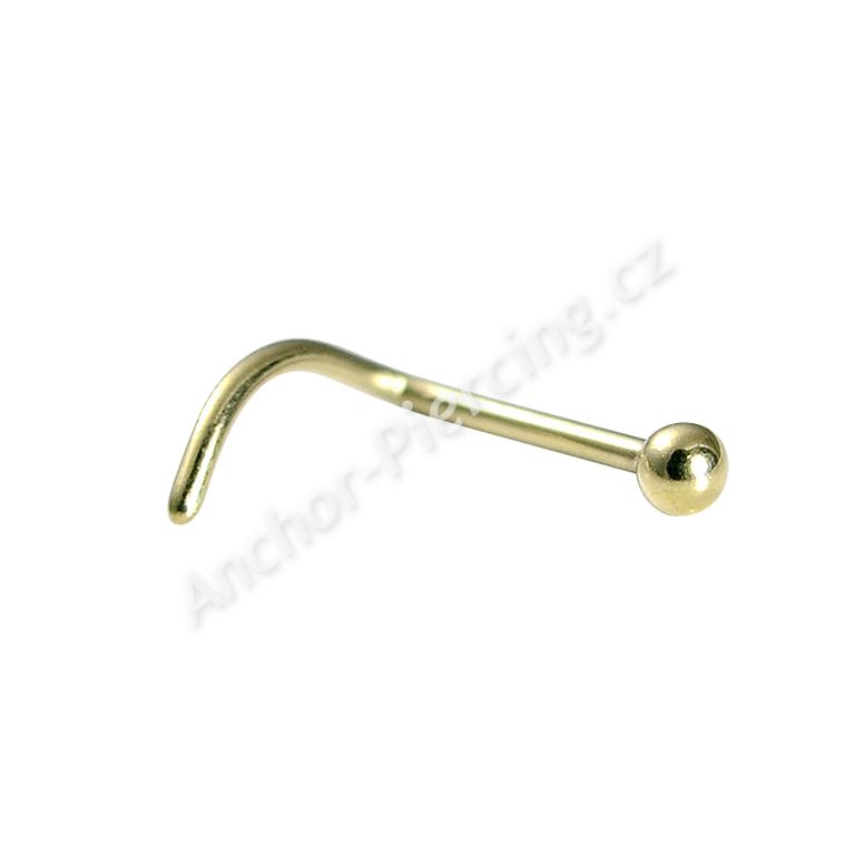 Nostrilka z chirurgické oceli 316L ve zlaté barvě. Přední strana má tvar kuličky o průměru 2mm.