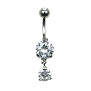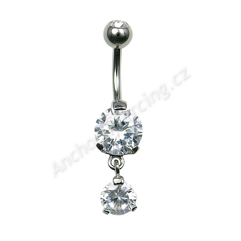 Piercing do pupíku z chirurgické ocele 316L se třemi čirými kamínky.