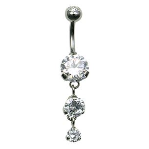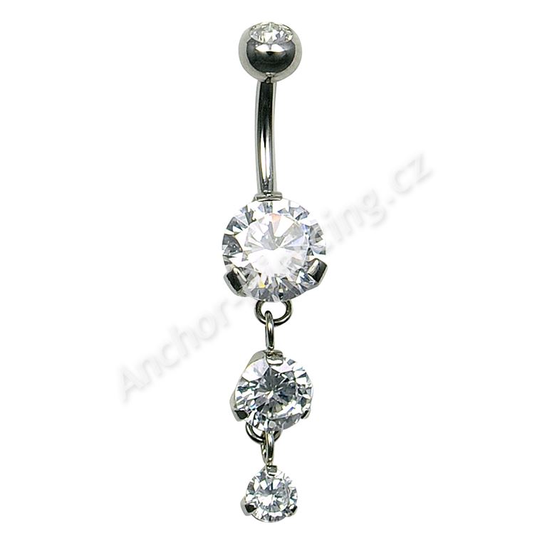 Piercing do pupíku z chirurgické ocele 316L se čtyřmi čirými kamínky.