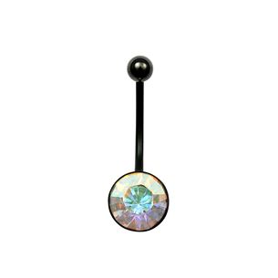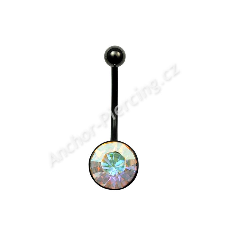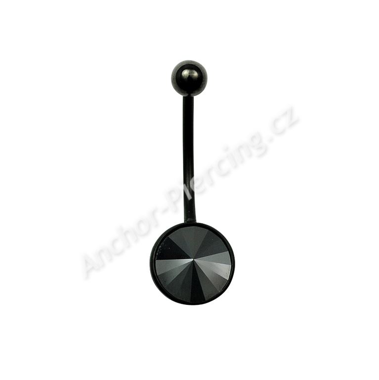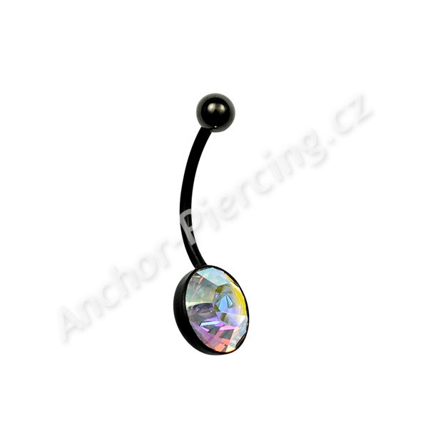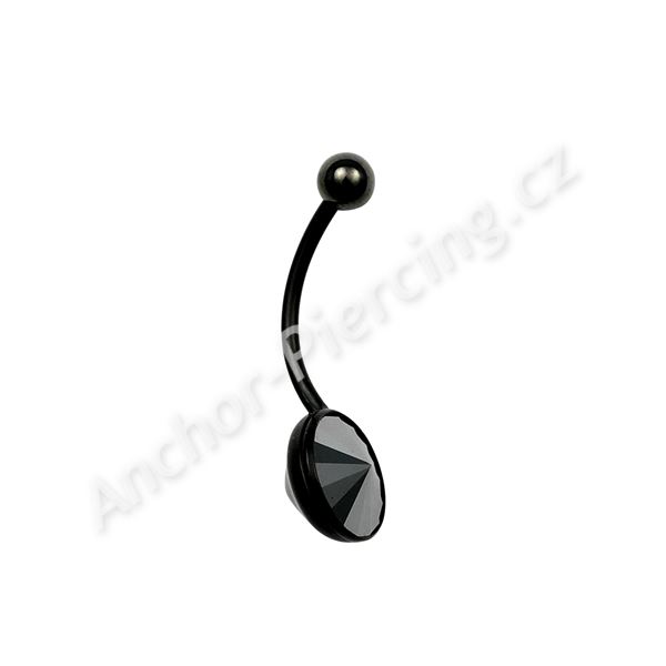 Piercing do pupíku z ohebného bioplastu. Tyčka má délku 10mm, dá se ale ustřihnout a přizpůsobit si tak velikost. Kulička je kovová, její průměr je 5mm. Kamínek má průměr 11mm.