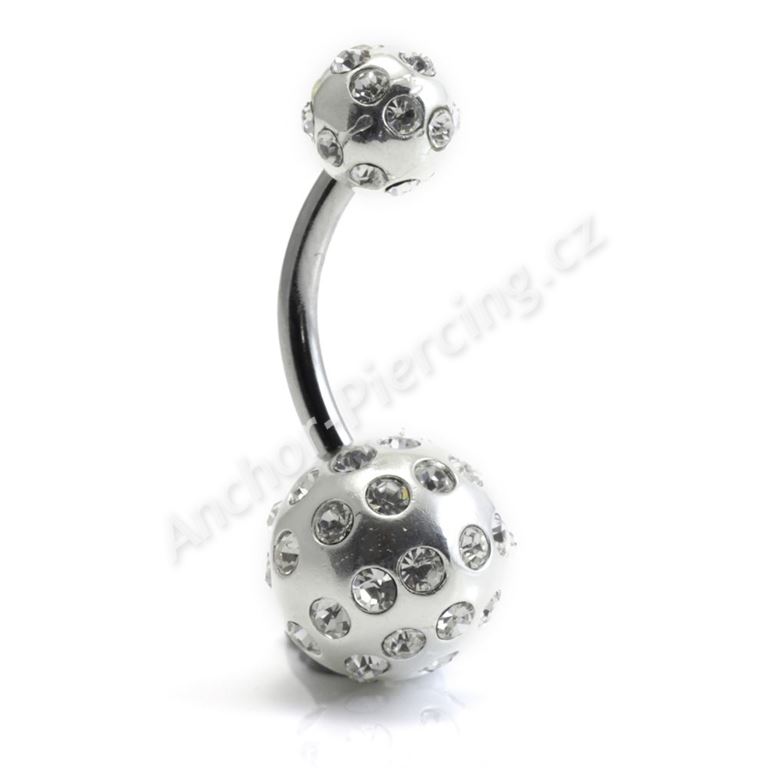 Piercing do pupíku s čirými kamínky Tiffany. Kuličky mají rozměr 9mm a 6mm a jsou obě šroubovací.