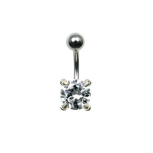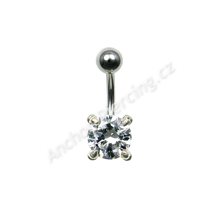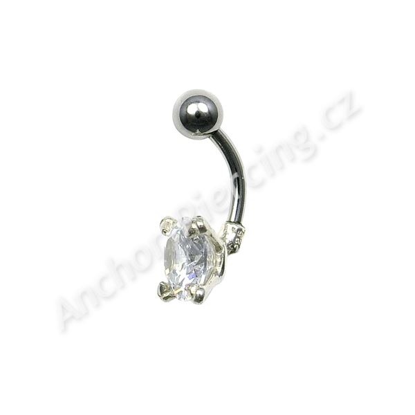 Titanový piercing do pupíku s čirým kamenem zasazeným ve stříbře.