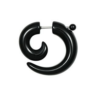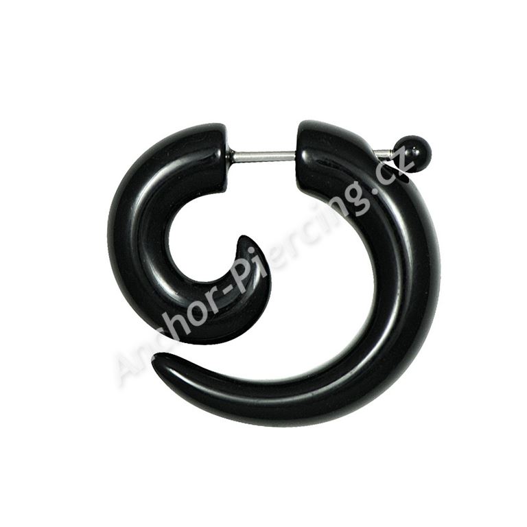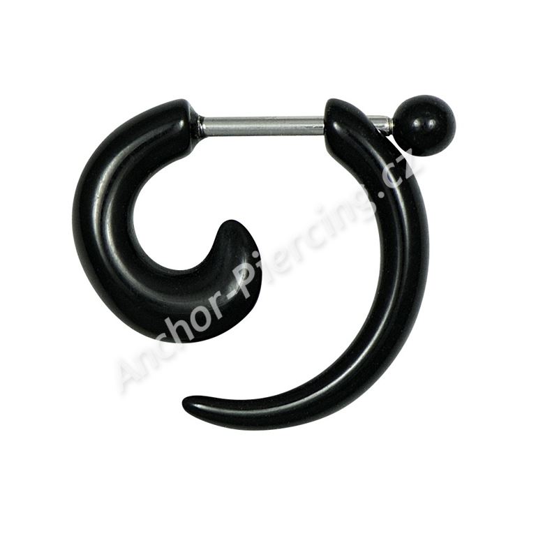 Falešný plastový roztahovák v černé barvě. Spojen je tyčkou z chirurgické ocele 316L. Upevňuje se pomocí šroubovací plastové kuličky, součástí balení je i náhradní kulička z chirurgické oceli 316L.