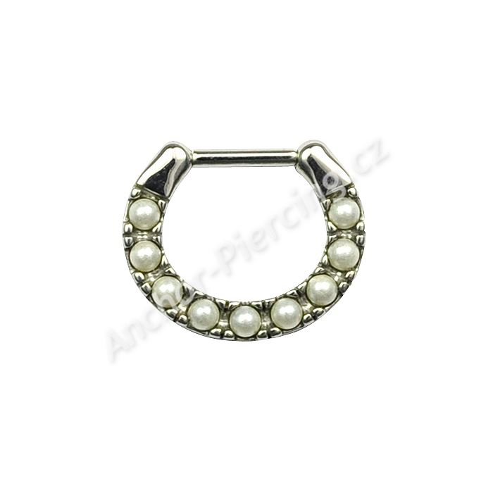 Septum z chirurgické oceli 316L se syntetickými perlami.