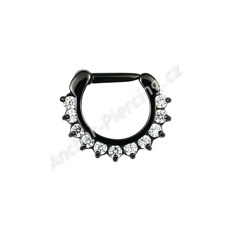 Černý kroužek pro Septum piercing s čirými kamínky Swarovski.