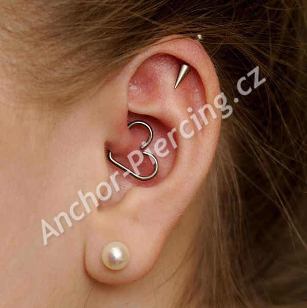 Srdce z chirurgické ocele 316L v černé povrchové úpravě se používá nejčastěji na tzv. Daith piercing do vnitřní chrupavky ucha.