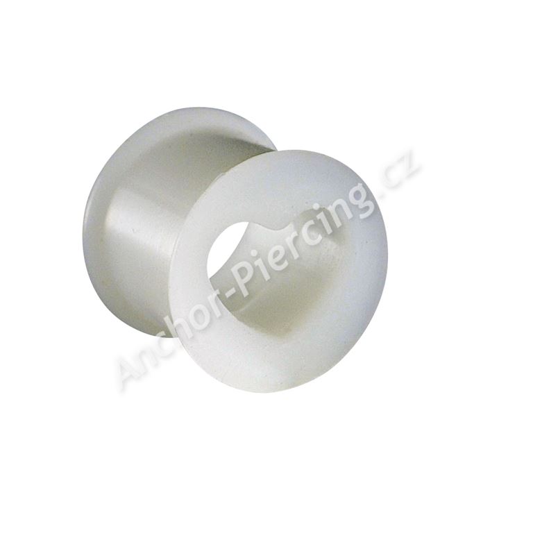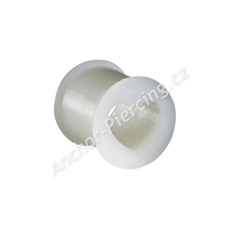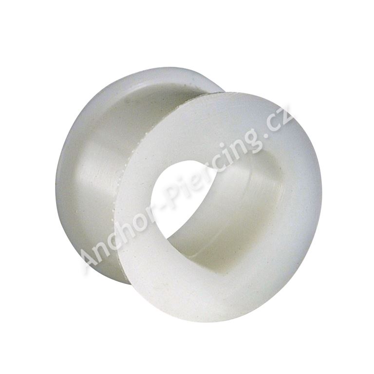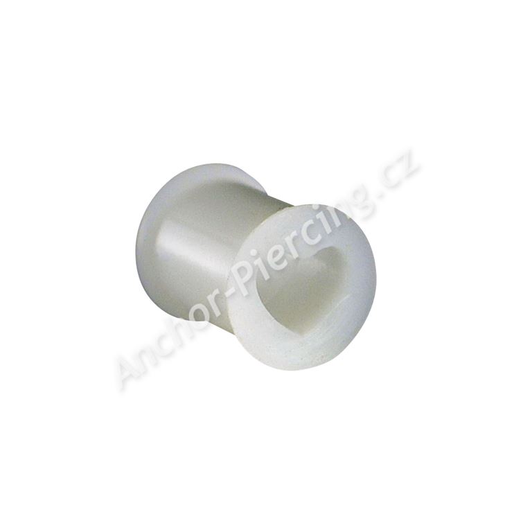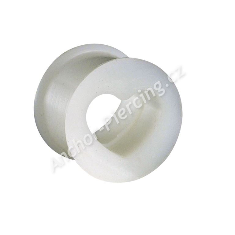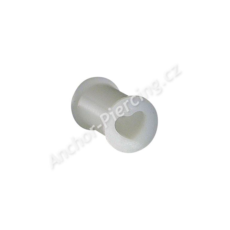 Tunel do ucha z bílého silikonu. Tunel je lehký a pružný, střed je vyroben ve tvaru srdce.