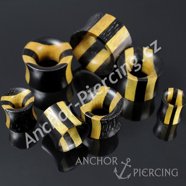 Dřevo se používalo pro výrobu šperků už v dávných dobách. Je to organický materiál, který může být používán i alergiky. Většinou se z něho vyrábí tunely nebo plugy. Ideální je použít tento typ materiálu pouze do zhojených piercingů, kvůli svému poréznímu povrchu. Díky jedinečným vlastnostem každého kousku dřeva je každý výrobek originál. Liší se jak texturou povrchu, tak drobnými odchylkami barvy.