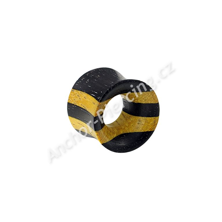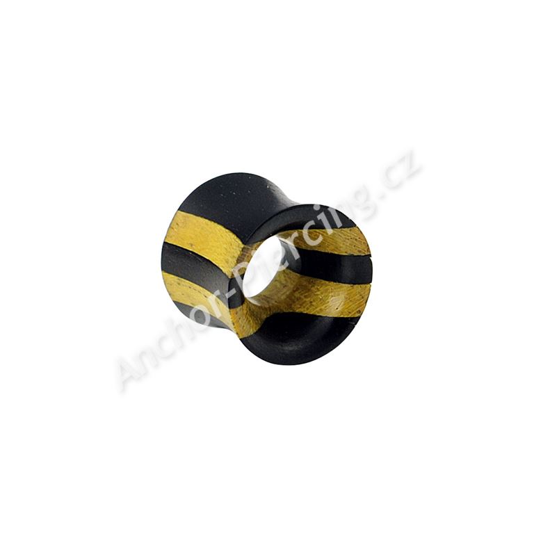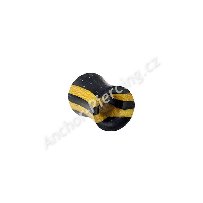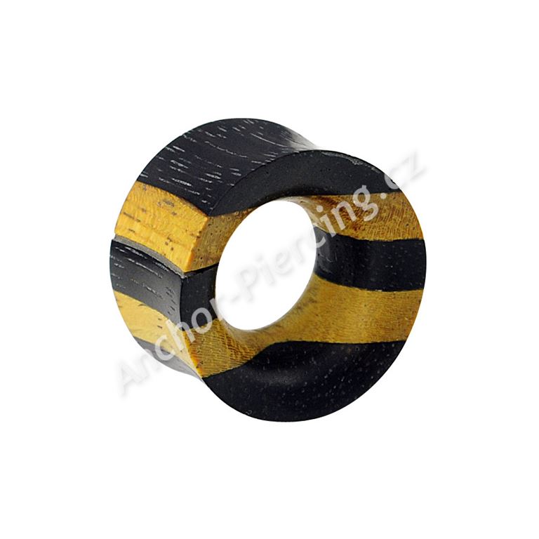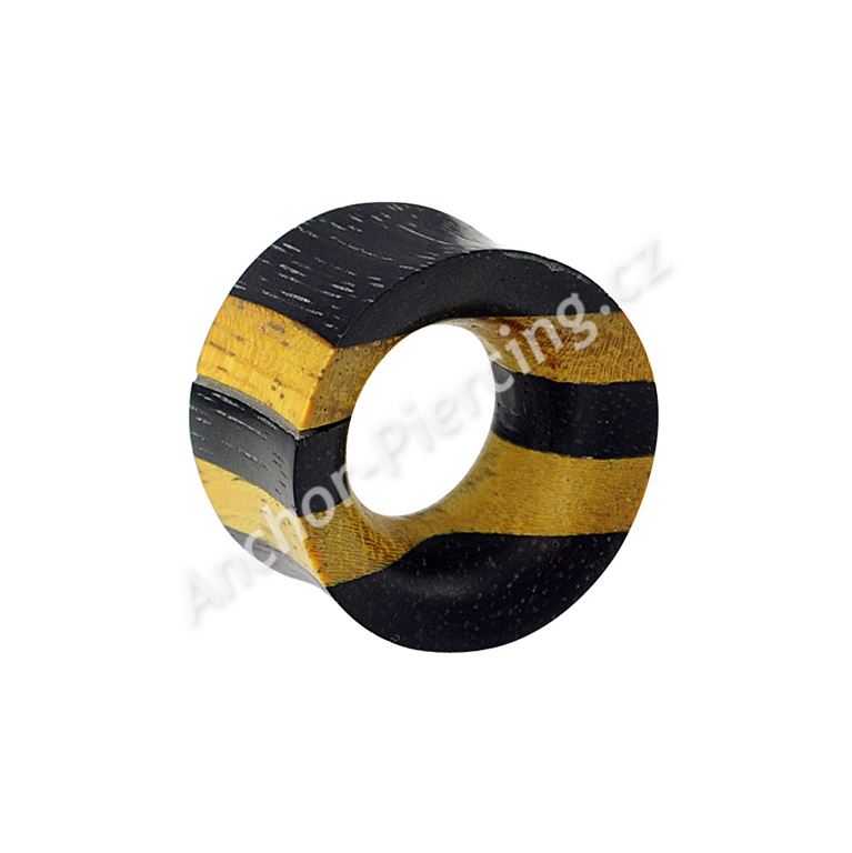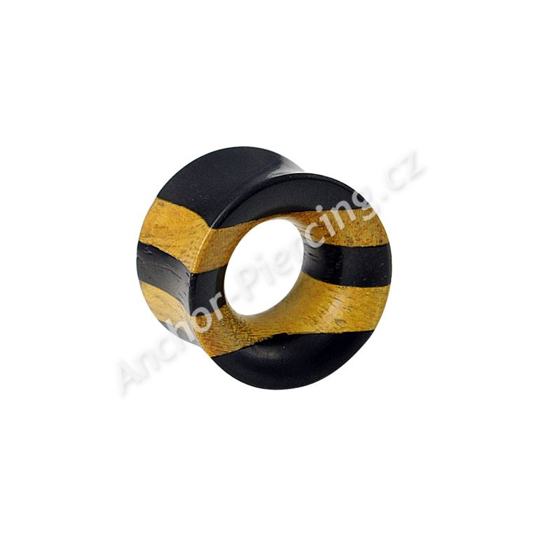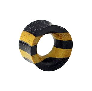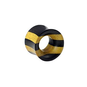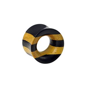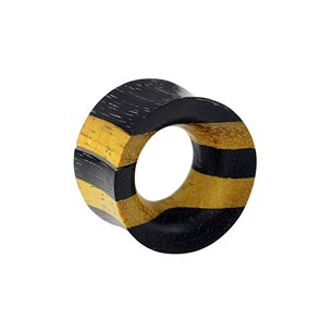 Dvoubarevný dřevěný tunel je vyrobený kombinací dřeva Arenga a Jack Wood. Díky struktuře dřeva je každý kus originál. Ideální je použít tento typ materiálu pouze do zhojených piercingů, kvůli poréznímu povrchu. Dřevěné tunely jsou oblíbené pro svoji lehkost a snadnou údržbu, oproti kovovým tunelům se na nich tvoří mnohem méně mazu a téměř nezapáchají. Doporučujeme je občas omýt ve vodě a potřít voskem vhodným pro ošetření dřeva, nebo vazelínou aby dřevo nevysychalo.