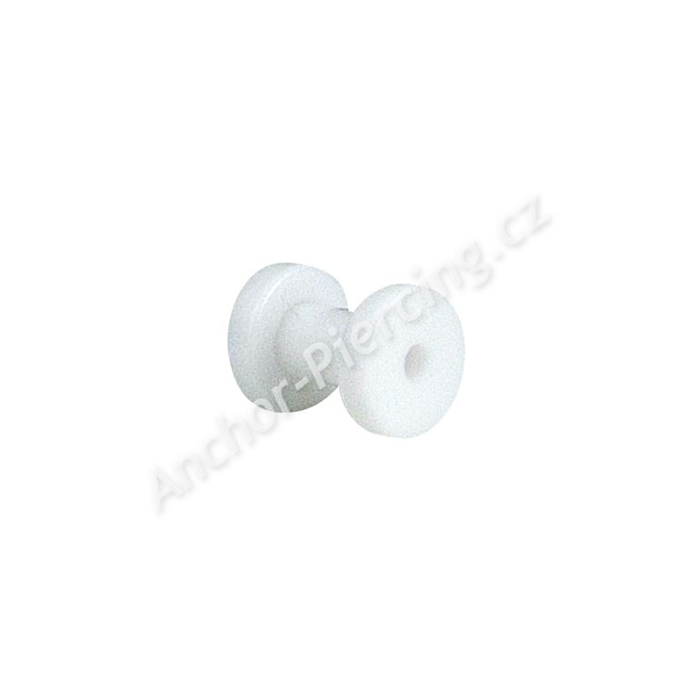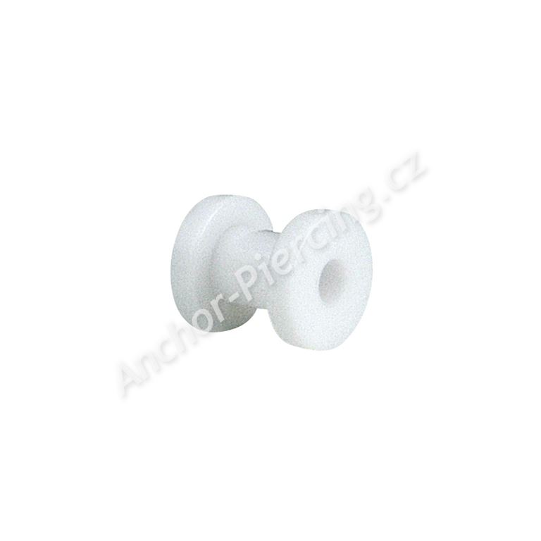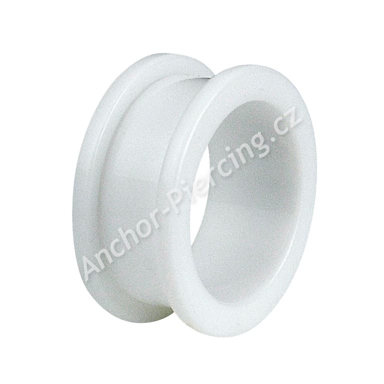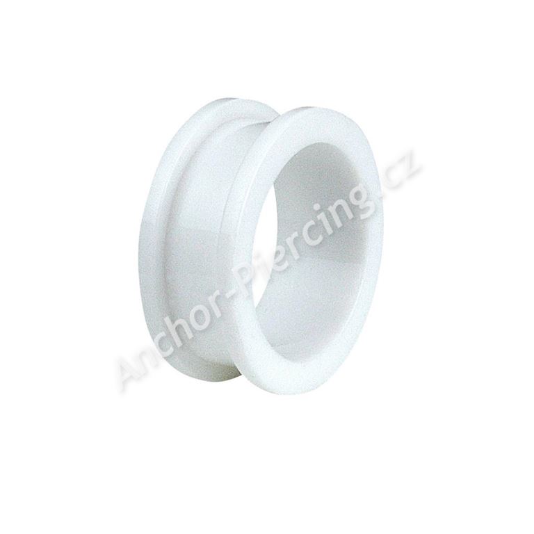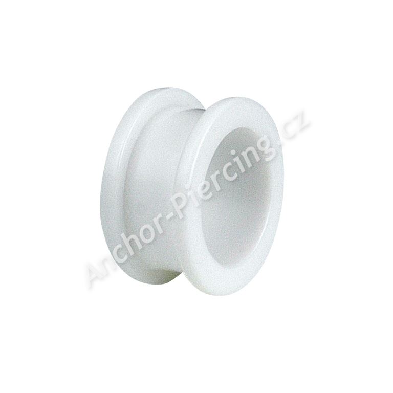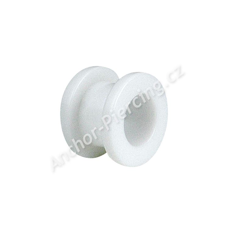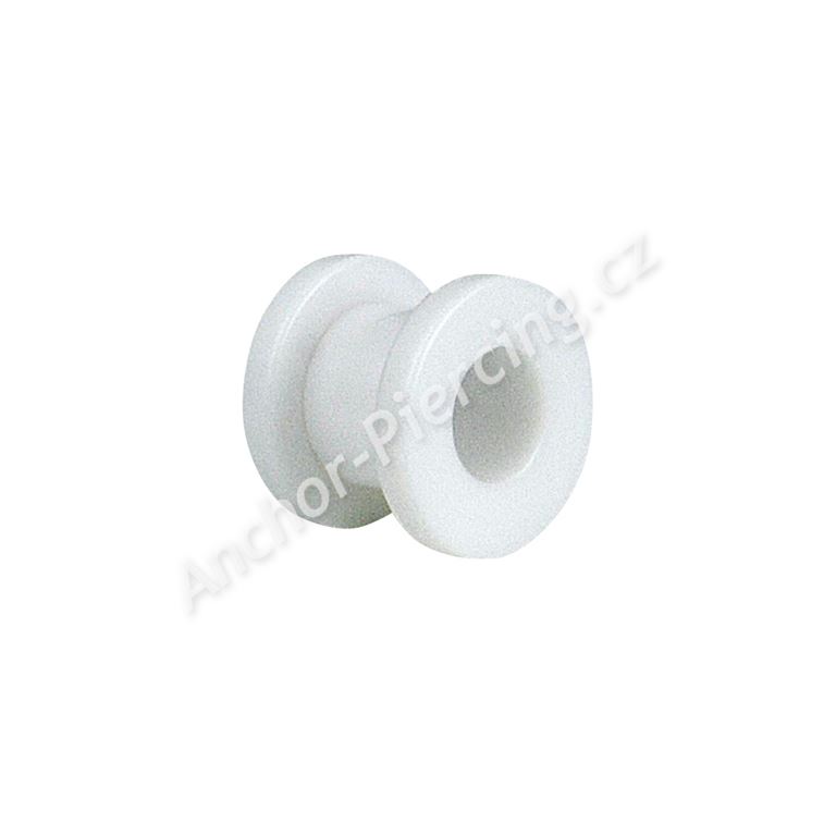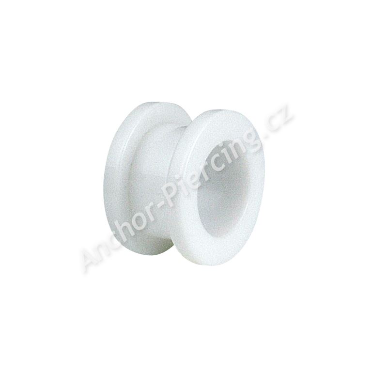 Bílý akrylový tunel. Zadní strana je osazena závitem pro snadné nasazování.