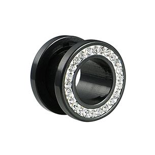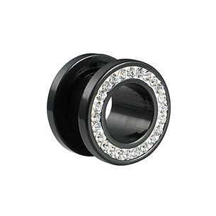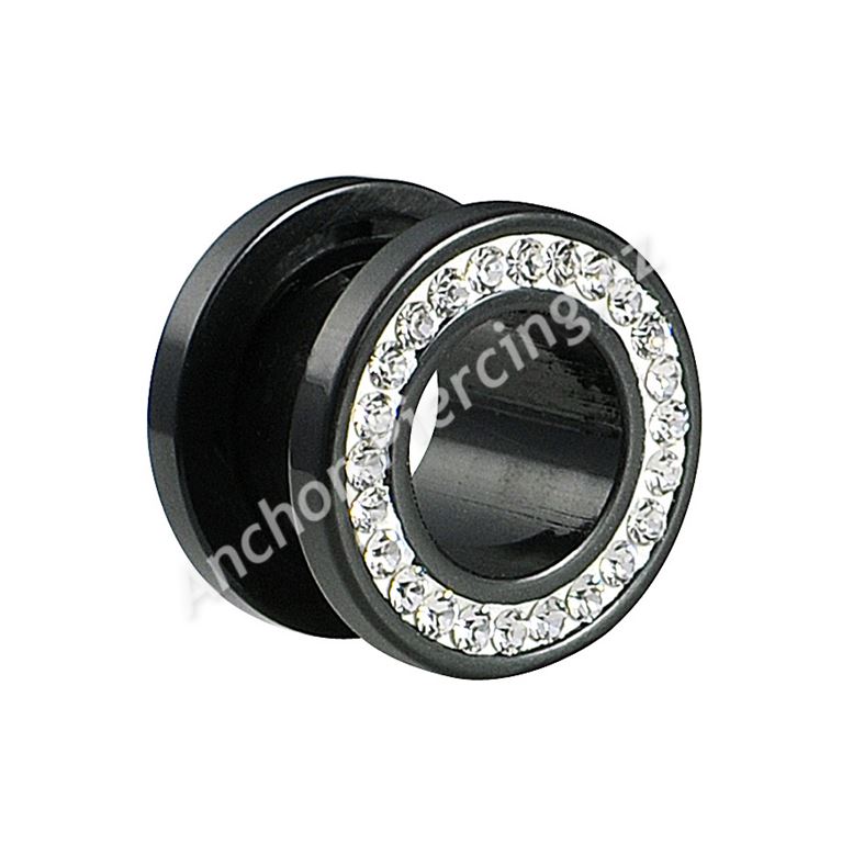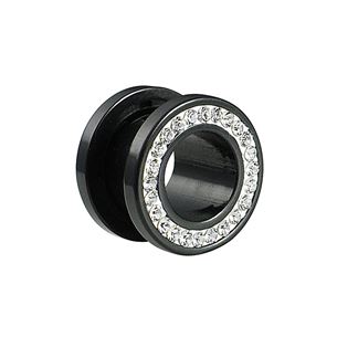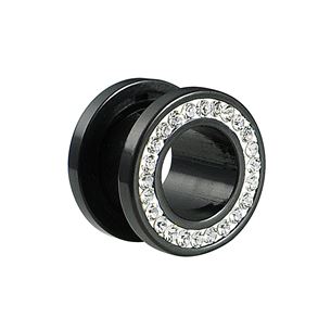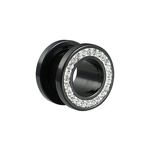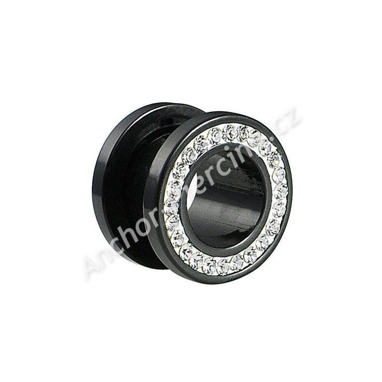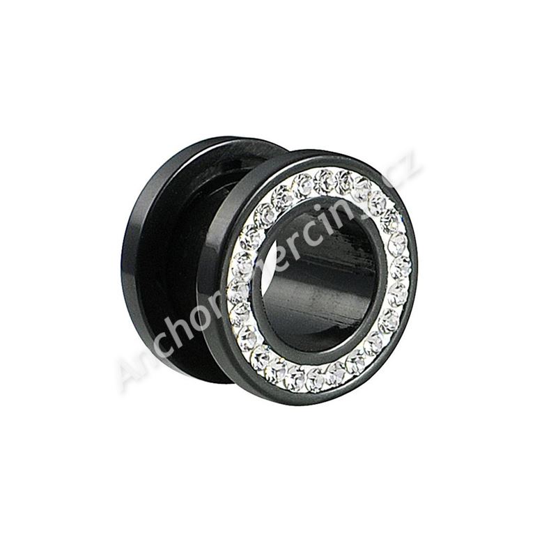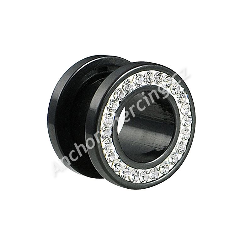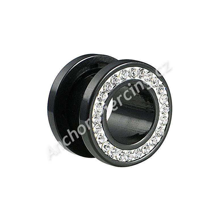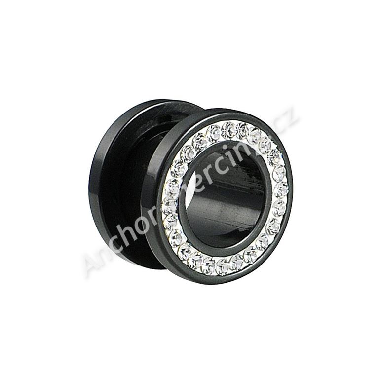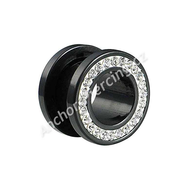 Černý akrylový tunel osazený čirými kamínky. Zadní strana tunelu je šroubovací.