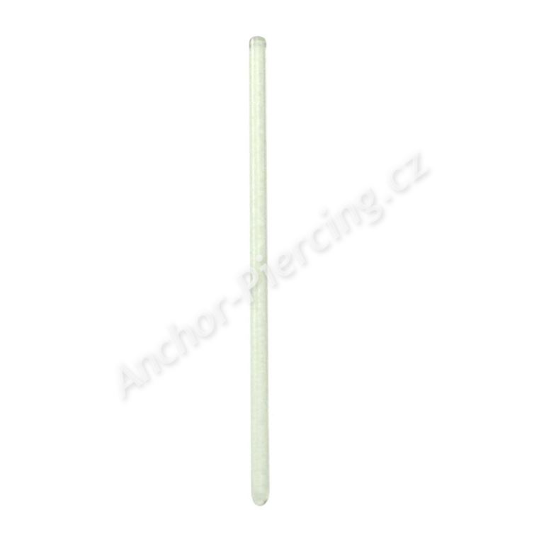 Tyčka z ohebného bioplastu se dá opakovaně zkracovat na libovolnou délku. Závit lze vytvořit našroubováním kovové kuličky odpovídajícího závitu. Hodí se perfektně například pro piercing jazyka, bradavky atd.