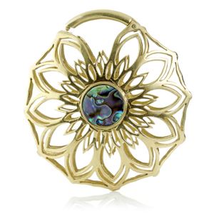 Mosazné závaží mandala. Síla drátu 3mm. Celkový průměr 65mm, průměr kamenu 16mm. Lze nosit ve zhojeném piercingu společně s tunelem, tak samostatně v roztaženém uchu.
